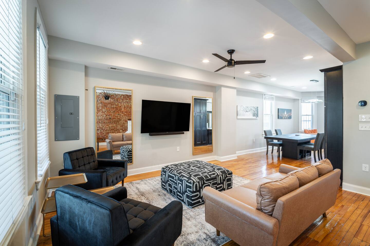 We are conveniently located with easy walk distance to the following Grocery Stores Whole Foods (4 min walk) Giant Grocery (7 min walk) Harris Teeter (15 min walk) Coffee Shops Starbucks (4 min walk) The Wydown (4 min walk) Sidamo Coffee and Tea (5 min walk) Recommended Restaurants, Markets, & Bars Old City Market & Oven (1 min walk) Bar Elena (5 min walk) Cane (5 min walk) Union Market (10 min walk) THINGS TO DO: The 2 closest Metro Stops from DCA are Union Market and NoMa Stations. Union Market is definitely closer. Exit backside of Union Market and head down H St. ★ NO SMOKING INSIDE ★ Please refrain from smoking inside the home! Any smoking evidence will result in a fee for Oder removal, Duct Cleaning, and furniture cleaning. You are allowed to smoke on the balcony. ★ NO PARTIES/EVENTS ★ We kindly ask you to treat our home as your own to preserve its pristine condition for future guests and your return visits. ★ COVID-19 SANITIZATION ★ Heath, safety, and well-being of our guests are of utmost importance. For this reason, we use a thorough cleaning process after each check-out. ★ QUITE HOURS★ Please be mindful that there are neighbors on either side of the home & that there may be a guest in the apartment below. Please be sure respect the designated quiet hours of 10 pm to 8 am. ★ PET FEES★ We do allow pets for $175 per pet. ★ SLEEPING ARRANGEMENTS & BEDS★ There is a king sized bed in the master bedroom and and 2 queen sized beds in the other rooms. We also just upgraded our couch in the living room to a sleeper sofa bed. We also have a Queen sized air mattress ★ EXTERIOR CAMERAS★ a. There are two active exterior cameras b. 1 camera on the front door and 1 camera on the backdoor c. The cameras capture the views of the front of the home and the backyard area. d. Cameras are do not actively record. The cameras do have a motion sensor feature which records when triggered. Feel free to contact us with any additional questions you might have.